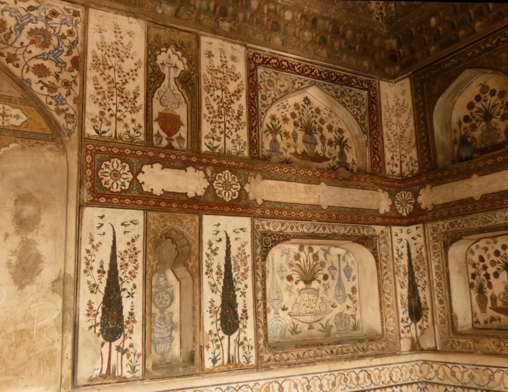 Detalle de las pinturas del Mausoleo de Itimad ud Daulah
